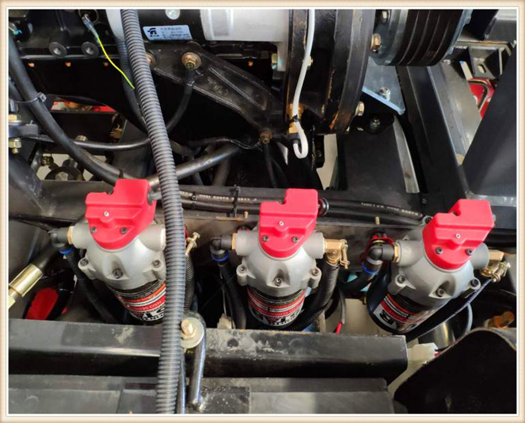 2. 采用副发动机专门驱动风机和液压系统,保证行驶过程中能继续工作,保证清扫过程的连续性。